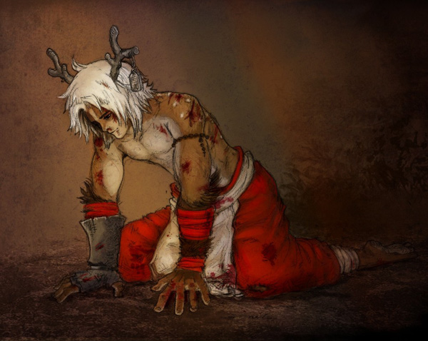 The legends say that he was born of an unfortunate union of sage and doe, seed spilt upon a plant soon eaten and pregnancy followed in the doe rather swiftly; legends are legends and little if any orf this is true - all that is known is that the boy was dumped upon the steps of a monastery hidden high in the Manchruan mountain.The boy was never given a name, and through his years was taught to do many of the things the elderly monks of the monastery could no longer do - he upkept the gardens, foraged for food, did repairs to the rooves and the walls of the monastery, and generally did much of the heavier lifting and more physical labour for those of the monks who no longer could keep up with such physical labour.